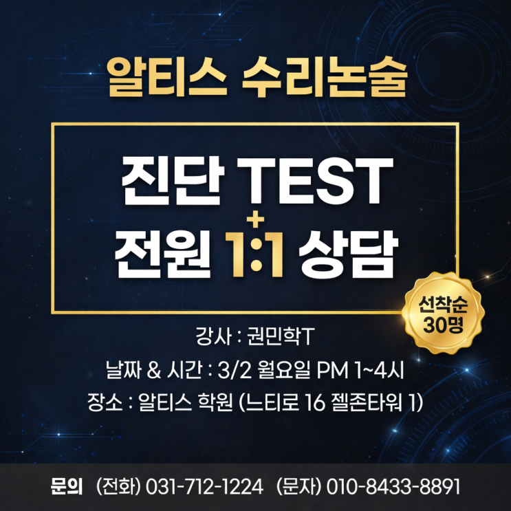 3/2(월) 알티스 수리논술 진단TEST + 1:1 대면상담 안내 (선착순 30명)