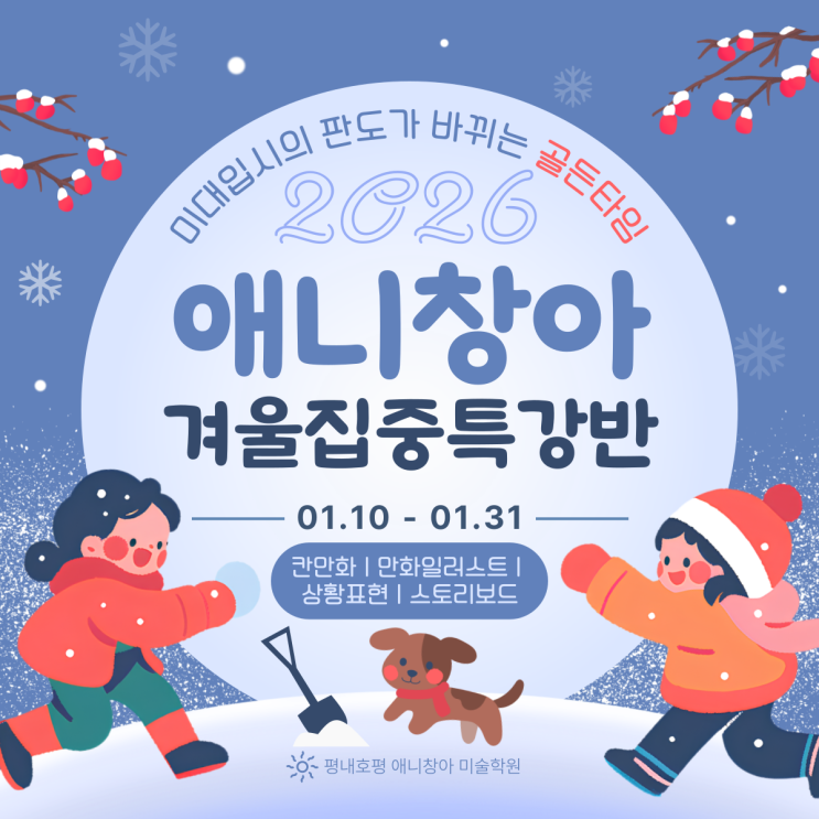 가평 애니학원, 골든타임 겨울집중특강반 OPEN|평내호평 애니창아 미술학원