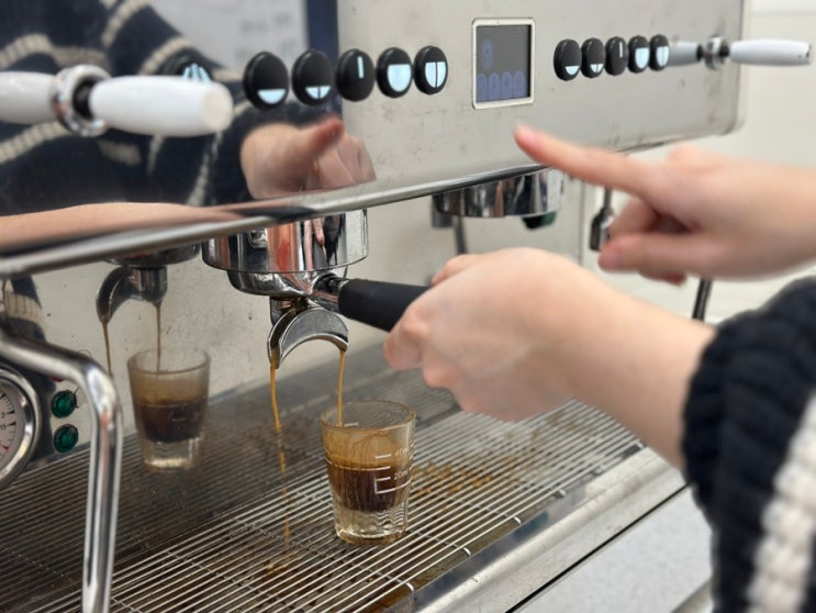 설레이는 에스프레소 추출 시간!! 멀리서 보기만 해봤지 직접 머신으로 추출은 처음인데 추출순서를 벌써 다 외우셨더라구요! 한두번~ 추출연습하다보면 저절로 외워지는 순서! 에스프레소, 리스트레또, 룽고를 추출하여 직접 맛도보거 플레이버 표현까지! 맛있고 즐겁게 커피수업 해보아용 유선문의 : 031-385-1285 <img src="https://blogthumb.pstatic.net/MjAyNTEyMDJfMjkg/MDAxNzY0NjgwODk0NzUx.bYL1AxvoVaTMBNh8ojG3VJowok5SQ81N3F3S8-0-RPgg.1GOZKI0E6qFcTxI3UdKXiAp22MH8G6WHCtNnq7Lwrk0g.JPEG/IMG%A3%DF7949.JPG?type=s3" />