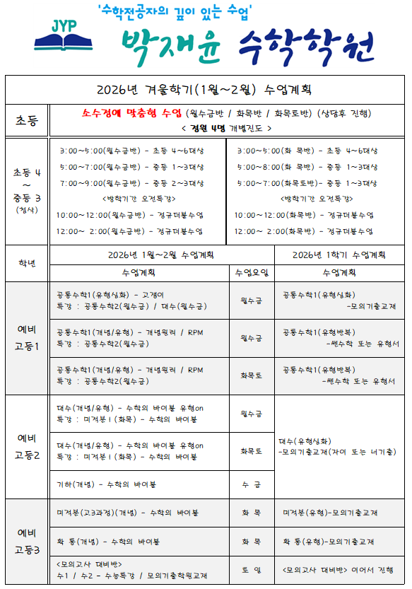 2026겨울학기 특강 및 정규 수업계획