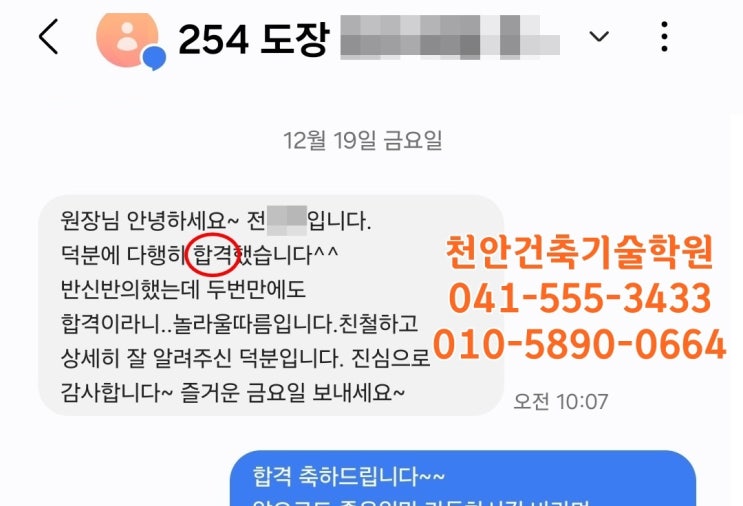 천안건축기술학원 2025년4회차 합격자 발표수기 - 천안건축도장 합격자발표