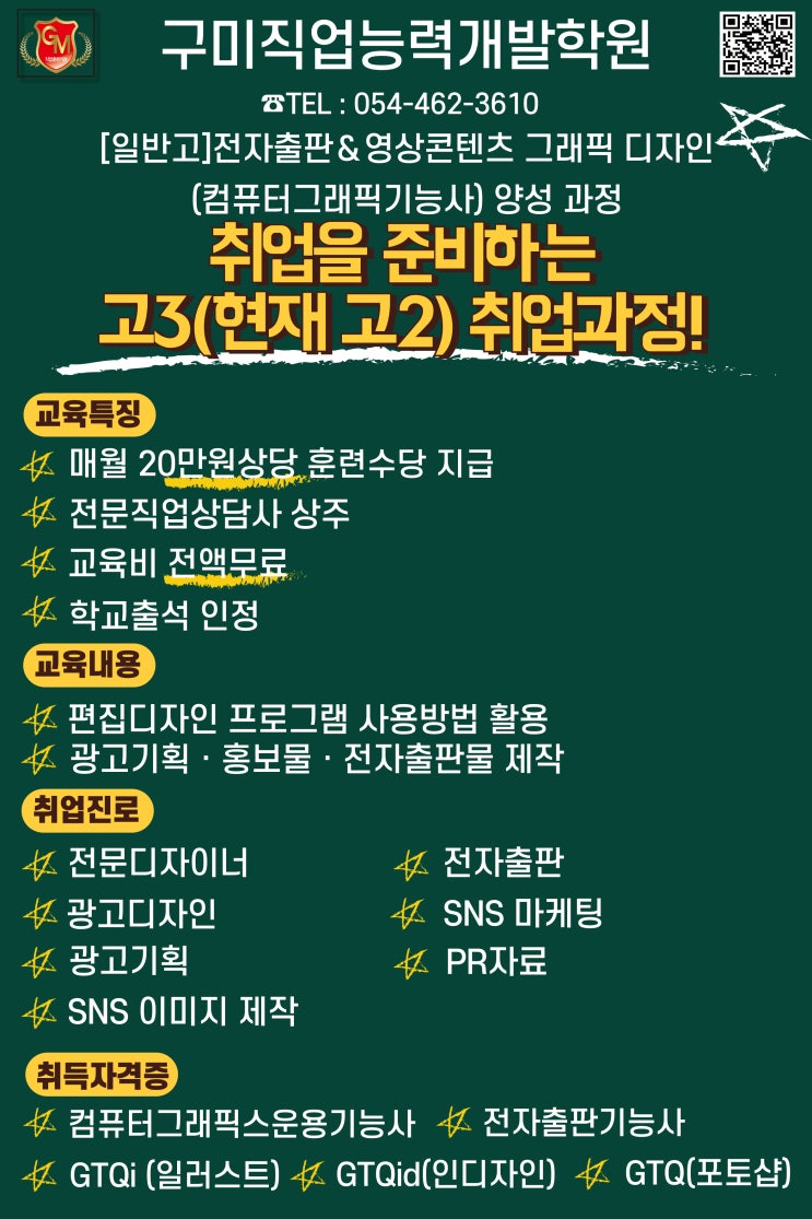 안녕하세요 구직능입니다 2026년도에 일반고 특화과정 운영예정입니다^^ 일반고 특화과정이란 무엇인지 말씀드릴게요 ✅ 일반고 특화과정이란? **일반고 특화과정(일반고 직업교육 위탁과정)**은 일반계 고등학교 학생들이 학교에서는 배우기 어려운 전문 직업교육을 외부 전문 기관에서 체계적으로 배우도록 지원하는 정부 지원 교육과정입니다. 일반 계열 교육과정만으로는 부족할 수 있는 직업능력·자격증 취득·실무경험을 강화하기 위해 마련된 제도입니다. 일반고 특화과정의 주요 특징 1️⃣ 직업전문 교육기관에서 실무 중심으로 학습 포토샵·영상편집·출판·코딩·미용·조리 등 학교에서 제공하기 어려운 전문 실습 교육을 외부 기관....... <img src="https://blogthumb.pstatic.net/MjAyNTEyMTBfMTA3/MDAxNzY1MzM0Mjc5Mjc2.m1JcgUnAF0InPtYeCxZ9JNp9tmqGbvY9jfG-sqAjJBUg.-tuXrSbjhACVD-qR3o1s2-01ucyzBAkvfNSAbryesmog.JPEG/2026%B3%E2_%C0%CF%B9%DD%B0%ED%2825.11.25%29.jpg?type=s3" />