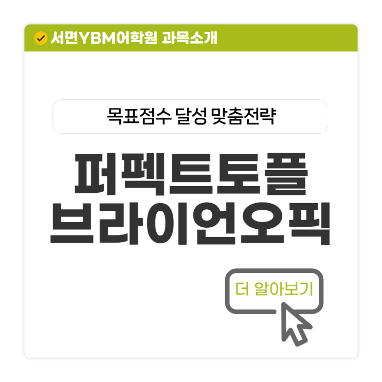 서면영어학원 YBM서면 : 퍼펙트토플 & 브라이언오픽 과목안내