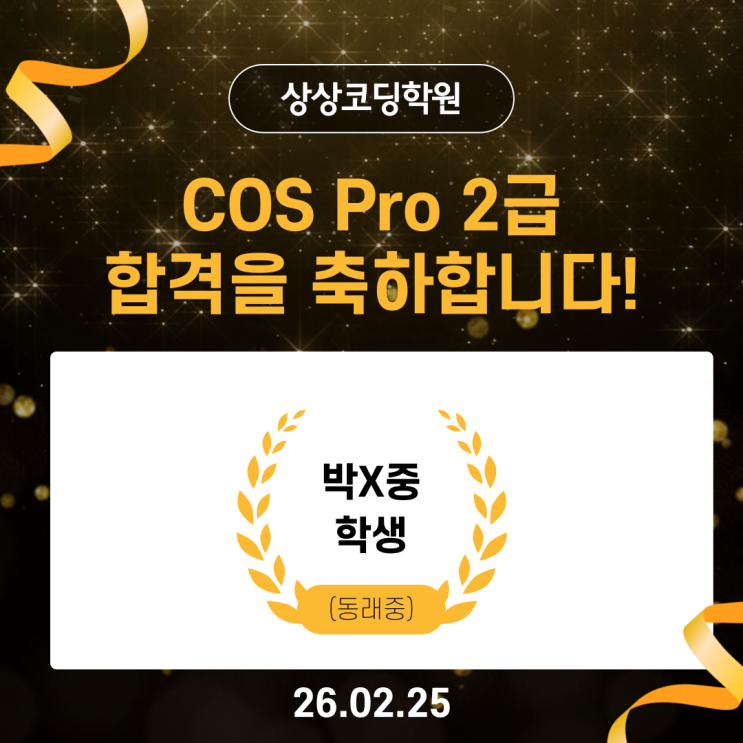 안녕하세요. 상상코딩학원입니다. 합격을 축하합니다 ^^ <img src="https://blogthumb.pstatic.net/MjAyNjAyMjVfMTIy/MDAxNzcxOTk3MzEwNjE4.ly0cilYhPzOWk1kwADZpVtyyvW93JjxZDvJ6jGKPbSwg.zFO_umW8IinEOKSEcKQRFKEHD4Z2qLwUJxCLr4rMu3Ug.PNG/COS_Pro_2%B1%DE_-_%B9%DA%C7%D1%C1%DF%28%B5%BF%B7%A1%C1%DF%C7%D0%B1%B3%29.png?type=s3" />