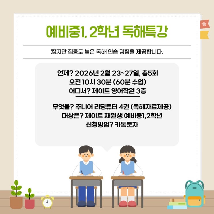 예비 중학생 1, 2학년 특강 수업을 했어요. 저를 표현하는 단어 중 하나는 '책임감'입니다. 대부분의 사람이 그렇겠지만, 제가 만났던 학창시절 선생님들의 평가를 봐도 그렇고 제가 그동안 해온 일들을 봐도, 저라는 사람은 일단 제게 일이 주어지면 끝까지 해내고요, 게다가 잘 해내려고 합니다. 영어학원을 하면서 성장기의 아이들을 만나고 있어요. 이 아이들을 맡는다는 것은 , 아이들의 미래에 많은 영향을 끼친다는 것을 알고 있습니다. 그래서 학원일이라는 것이 스트레스가 없을 수가 없습니다. 그럼에도 불구하고 저는 이러한 스트레스를 저의 성장동력이라고 생각하고 있습니다. 2월의 마지막 한주, 3월 신학기를 대비한 신....... <img src="https://blogthumb.pstatic.net/MjAyNjAyMjhfNzEg/MDAxNzcyMjI1MDcxNjQw.cqpqI7b8ko5au4SNENcgrYmtgmJcbtlkVF3ftaZD_agg.Qr86aIst1fy9g5whQ4uyCkJ7U2c6ClFVYB_eRk8UAKUg.JPEG/%B5%B6%C7%D8%C6%AF%B0%AD%BE%C8%B3%BB_%281%29.jpg?type=s3" />
