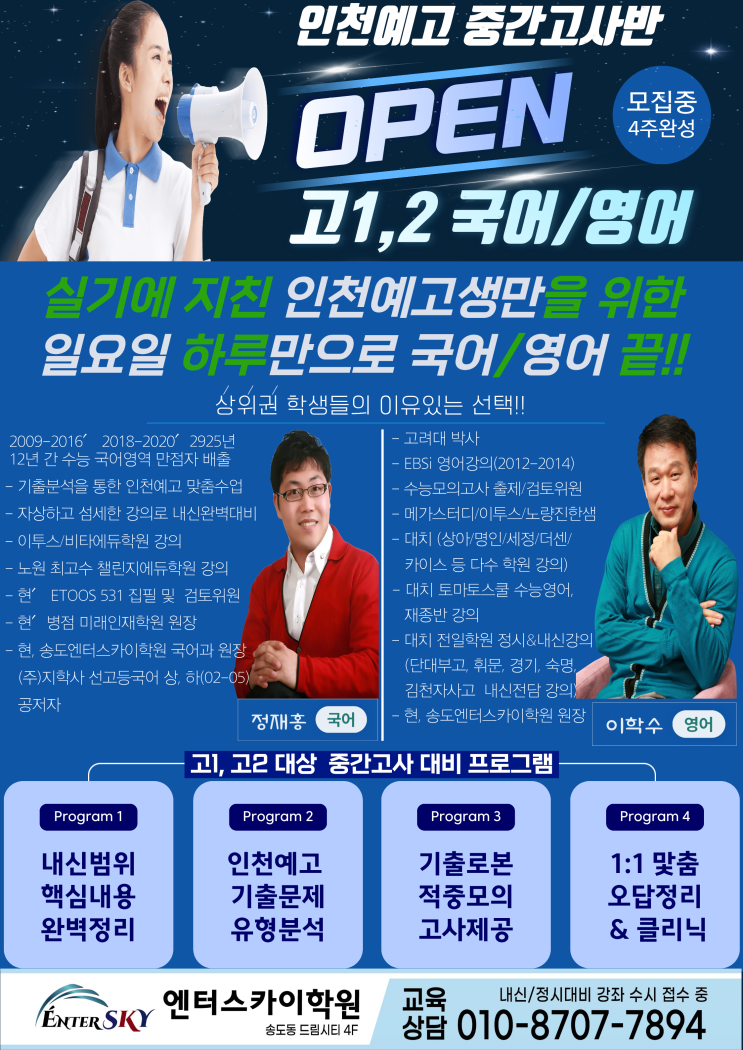 인천예고 1,2학년 국어/영어 중간고사 대비반 개강 안내