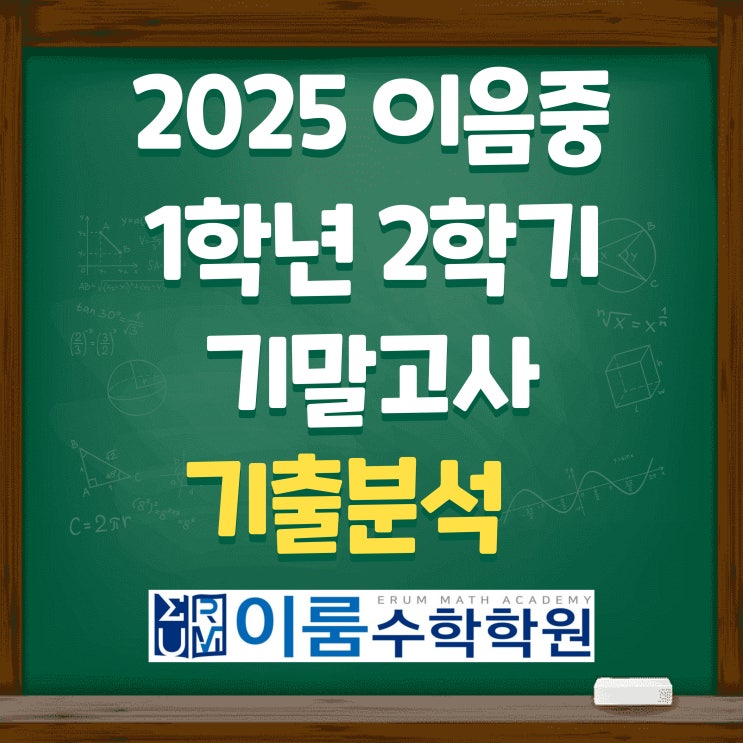 안녕하세요 이음 중학교 수학학원 이룸 수학학원입니다. 어느덧 2학기를 마무리하며 학생들과 함께 달려온 한 해를 돌아보게 됩니다. 2025년도 이음중 2학기 기말고사 이번 2025년도 이음 중학교 1학년 2학기 기말고사는 작년에 비해 한층 어렵게 출제되었습니다. 교과서 응용문제나 학교 프린트물을 응용한 유사 문항도 있었지만 전체 25문항 중 심화 문제가 6개나 포함되어 있었고 그중 한 문제는 2학년 선행 단원에서 출제되었습니다. 이로 인해 학생들이 느낀 체감 난이도는 상당히 높았으며 실제로 작년보다 평균 점수가 50점대에서 40점대로 크게 하락하였습니다. 열심히 준비했던 학생들에게는 다소 아쉬운 결과로 느껴졌을 수도 있지만 이....... <img src="https://blogthumb.pstatic.net/MjAyNTEyMjBfNDYg/MDAxNzY2MjMwMDUwNDg1.aQ5mXBLjyM8iP8Fw20MzSmXaYtWsKPJ9kKp3QWO-W2Ig.oTvWmVWQMGZymyex76AdHfytTBsS_1CddJJ4j7M9NUQg.JPEG/%C0%CC%C0%BD%C1%DF_001.jpg?type=s3" />