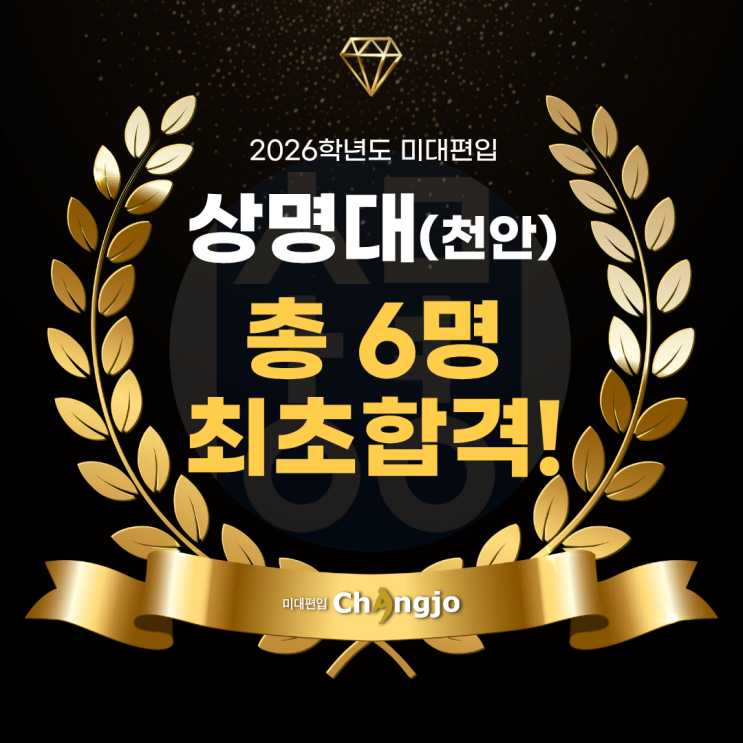 안녕하세요! 미대편입창조입니다 :) 오늘은 2026학년도 상명대(천안)에서 미대편입창조의 총 6명의 학생들이 최초합격했다는 소식을 들고 왔습니다! 미대편입에 대해 걱정과 근심이 많은 분들께 고민해결과 격려가 될 수 있는 소식이길 바랍니다! 2026학년도 미대편입 상명대(천안) 총 6명 최초합격 미대편입을 고민하는 분들에게 이번 합격 사례가 큰 동기부여와 좋은 정보가 되기를 바라며, 학과별 합격 소식과 함께 구체적인 전형 분석까지 꼼꼼하게 다뤄보겠습니다 :) 합격하신 여러분, 진심으로 축하드립니다! 2026학년도 미대편입 상명대(천안) 커뮤니케이션디자인 박OO 최초합격!! 2026학년도 미대편입 상명대(천안) 디지....... <img src="https://blogthumb.pstatic.net/MjAyNjAyMTFfMjg1/MDAxNzcwNzkzMzg2OTEz.nogvxI5bz0cWpv5LfWVZBN2fiFgbukOew7tBNpNFOEEg.F-AMkpy0lDpwzGRuBB__Yaex3zWHV2_vuYcLetbLQN8g.PNG/%BD%E6%B3%D7%C0%CF.png?type=s3" />
