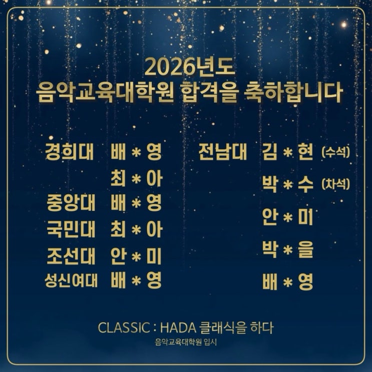 (❤️음악교육대학원입시/클래식을하다) 경희대 중앙대 국민대 성신여대 및 전남대 조선대 음악교육대학원 합격을 진심으로 축하드립니다