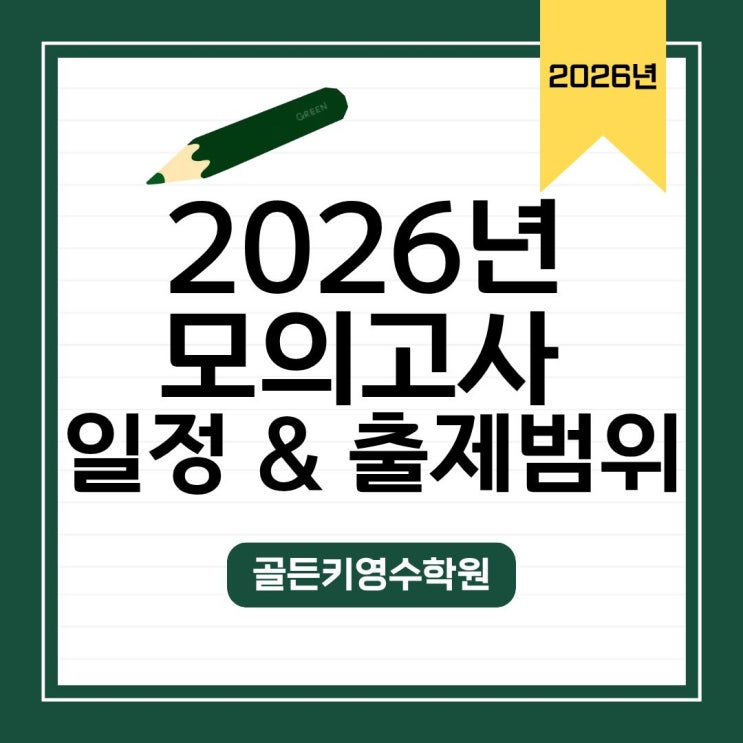 습니다. 2026 첨단 고등 모의고사 일정 안녕하세요~ 첨단 LC타워 입시전문 골든키영수학원입니다. 첨단고 · 비아고 · 숭덕고 · 빛고을고 학생들이 가장 많이 검색하는 정보 중 하나가 바로 2026년 전국연합학력평가(모의고사) 일정과 준비 방법입니다. 특히 첨단 수학학원 / 첨단 영어학원을 찾는 고등학생 학부모님들이 ✔ 모의고사 일정 ✔ 시험 범위 ✔ 준비 전략 을 많이 궁금해하시는데요. 오늘은 2026년 전국연합 모의고사 일정과 학년별 시험범위, 학습 전략을 정리해보겠습니다. 2026년 전국연합 모의고사 일정 2026년 모의고사는 교육청과 한국교육과정평가원에서 주관합니다. 2026 모의고사 일정 3월 24일 : 전국연합학력평가 5월....... <img src="https://blogthumb.pstatic.net/MjAyNjAzMTJfMTE1/MDAxNzczMjk2NDc4MzQ2.ZQfoZm2QhlXt-wSqFR5rFfwlTIhLsF3E17aEkyXKymog.Jutv4T-_y5FpQO4QymI1_wNhg-HRi79KNrxGGBRUneog.JPEG/2.jpg?type=s3" />