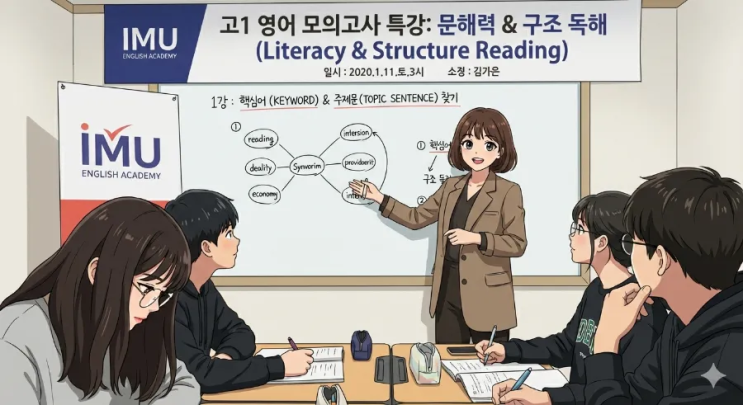 ✨️2026 겨울방학 특별강의가 종강되었습니다✨️ 종강 종강 계속 말하다보니 단어 자체가 귀여운 것 같기도 해요 종강 종강 약간 깡총 깡총 같기도 하고 이번 겨울방학 특별강의에서는 [모의고사 구조분석]을 중심으로 총 40개의 지문을 10개의 구조로 나누어 어떻게 하면 '정답을 찾는 시각'을 가질 수 있는지, 심층적으로 다루는 시간을 가졌습니다. ✅️ 큰 틀에서 모의고사 구조는 결국 키워드와 토픽 센텐스를 위해 존재하기에 ️글이 어떤 흐름으로 진행될지 예측하고 그 안에서 마주하게될 변수까지 처리할 수 있다면 어떤 글이 나와도 주도적으로 승기를 잡고 읽어내려갈 수 있을 겁니다. ️ IMU 는 빈....... <img src="https://blogthumb.pstatic.net/MjAyNjAyMjBfMjUz/MDAxNzcxNTIwNzg3MzY4.6v3-KqG6VBtmBXCFa-0WfFICN75IVCTz9Y9_LRnHtGMg.LrF1nIshGqIKHHJ20hHgiHqxMpkstmiJwURaFV6GyHwg.PNG/900%A3%DF1768319397901.png?type=s3" />