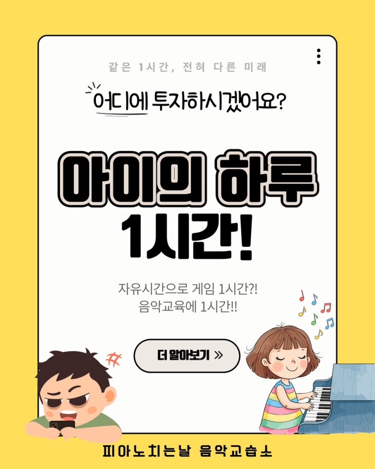 원신흥동음악교습소) 하루에 핸드폰 게임 1시간, 음악교육 1시간. < 원신흥동 피아노치는날 음악교습소 >