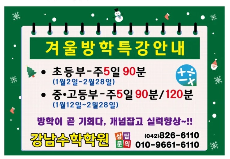 2026년 노은 팀플레이학원 겨울방학 수학 방학특강