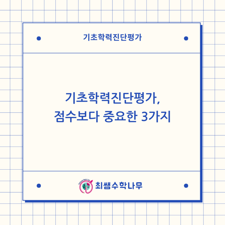 기초학력평가, 점수보다 중요한 3가지 안녕하세요. 울산최쌤입니다. 3월이 되면 학교에서 실시한 기초학력평가 결과 때문에 문의가 많아집니다. “수학 점수가 생각보다 낮아요.” “많이 부족한 걸까요?” “중학교 가면 힘들까요?” 하지만 이 시험은 성적을 매기는 시험이 아니라 아이의 현재 학습 상태를 점검하는 것 입니다. 그래서 점수보다 더 중요한 것이 있습니다. 1️⃣ 어디서 틀렸는지 확인하셨나요? 수학 기초학력평가는 단순 계산 시험이 아닙니다. ✔ 문제를 정확히 읽었는지 ✔ 상황을 식으로 바꿀 수 있는지 ✔ 개념이 연결되어 있는지 를 확인합니다. 연산이 빠른데도 점수가 낮은 경우, 대부분은 문장 해석 과정에서의 흔....... <img src="https://blogthumb.pstatic.net/MjAyNjAzMDJfNjUg/MDAxNzcyNDM0MzkxNjc1.HQxYVg3JBansbvVo6g9VOw4CjfztKHU9o-E00dkTkwEg.Ns8eUgAG2KyXCBidYanNWl4GzFkUt6btFa21uekS2Xgg.PNG/%C3%D6%BD%DC%BC%F6%C7%D0%B3%AA%B9%AB_%2813%29.png?type=s3" />