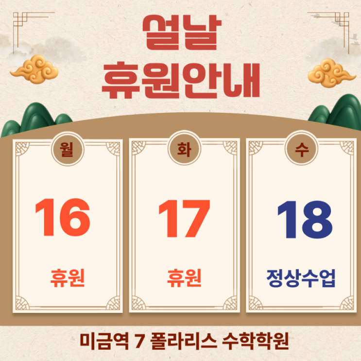 [미금역 수학학원]2026 설날 휴원안내