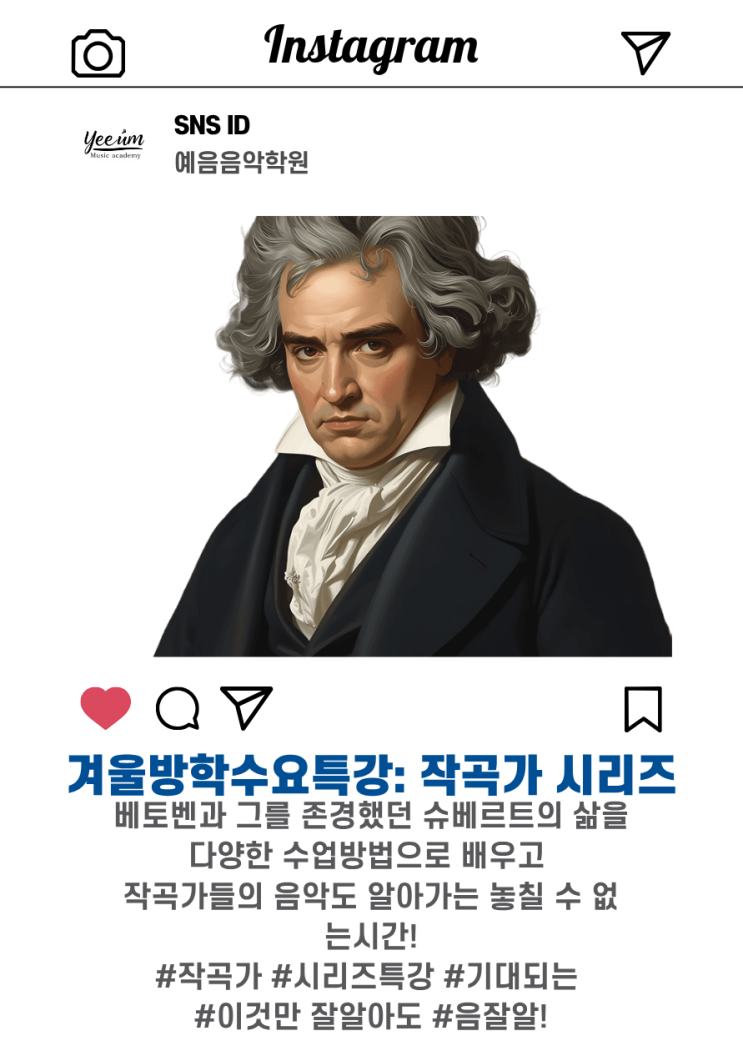 ↓↓↓↓↓↓↓↓↓↓신청서↓↓↓↓↓↓↓↓↓ 3번이상 결석시 수업을 할 수없습니다 겨울방학 안내 휴일:12월25일 목요일/1월1일목요일 학원 방학: 12월29~31일/ 학원 방학 시간:12시30분~6시30분(5시30분까지 보내주셔요) 졸업 축하 기념식 유치부 어린이들, 6학년 친구들, 중3친구들,고3친구 졸업을 축하하며 9일 6시에 잠시 만나 축하하는 시간과 준비한 선물 꼭 받아가요^^ 우리끼리 연주회 방학동안 열심히 연주곡들을 배워서 원생들과 함께 즐거운 연주회를 하려고 합니다. 과자파티도 하고 연주도 하며 연주라는 것이 좀 더 즐거울 수 있는 경험과 자신감을 갖게 하기 위한 귀한 시간 되길 바랍니다. 청소년 서양음악사 수업 예비 6학년....... <img src="https://blogthumb.pstatic.net/MjAyNTEyMjNfNjIg/MDAxNzY2NDcyMjg4MzAw.PwDFNLZjds0mrtdB95OU7YSCUZMDb0p4U03cWPxjlagg._f9A2SR02RZyw1UKLI16BWyX_VSGp2aOOzDdlMbEIzgg.PNG/2_%284%29.png?type=s3" />