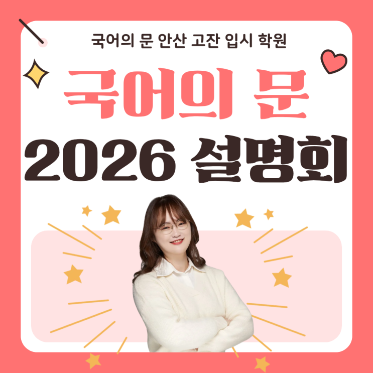 안녕하세요 여러분 국어의 문 원장 문쌤입니다~ 25년도 벌써 마지막달이 되었습니다. 2학기 시험도 마무리가 되어가고 새로운 해가 기다리는 때에 내년을 대비하지 않을 수 없죠? 그래서 준비했습니다 2026대비 국어의 문 겨울 설명회 수능의 뜨거운 감자 국어 올해 국어 만점자는 단 261명 24수능 이후 역대급 표준점수 147점 날이 갈수록 국어의 중요성은 표준점수만큼 높아집니다!! 상위권 대학에서는 국어가 합격에 큰 영향을 줄 예정입니다. 이렇게 중요한 국어 어떻게 공부해야 할까요? 이렇게 중요한 국어를 제대로 설명드립니다. 너무 복잡한 22개정 고교학점제 국어 공부 방법 어휘력? 문해력? 우리 아이는 어떻게 공부해야하나? 안산 학....... <img src="https://blogthumb.pstatic.net/MjAyNTEyMDhfMTQ2/MDAxNzY1MTQwMzIyNDQ3.7rVPDt5qBhVhgwU6mG12FwcBLEQFI_BeljYaujJ3oPEg.914Iz8ODnUX3FLk_EtBlGZGNikPLQoNGaDEPvmyE1S4g.PNG/1.png?type=s3" />