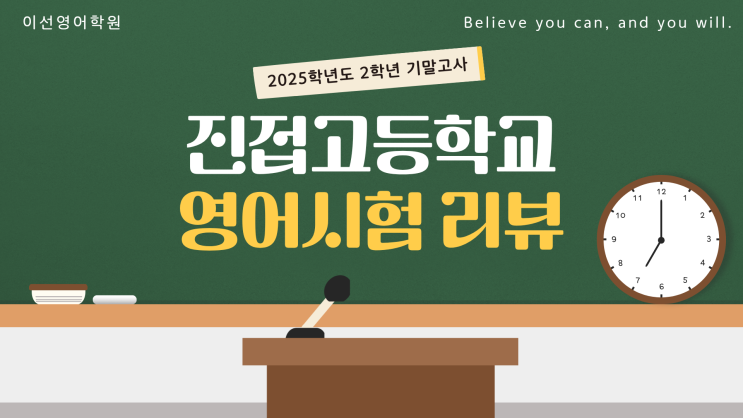 안녕하세요 우리의 의지를 현실로 바꾸는 곳, 이선영어학원입니다. 15일 월요일 우리의 기말고사가 시작되었습니다. 무려 5일간의 시험인 만큼, 첫 날 보는 과목의 결과가 향후 시험보는 마음에 영향을 미치는 것 같습니다. 지난 중간고사를 기억하실까요? 체감 난이도가 쉽다는 의견이 지배적이었지만 고2 영어 평균은 49점이었습니다. 쉬운 시험은 아니었단 것이죠. 이번은 어떨까요? 역시나 재원생 아이들이 시험끝나자마자 찾아와서 하는 이야기는 체감상 쉽다 였습니다. 그러나 평균은 중간고사와 큰 차이가 없을 것 같습니다. 아이들은 조금이나마 쉽게 느꼈지만, 실제 난이도는 크게 달라지지 않은 이유에 대해 아래 목차로 살펴보겠습니....... <img src="https://blogthumb.pstatic.net/MjAyNTEyMThfMTc4/MDAxNzY2MDQwMzEwNTk2.A0xVUmtziaJO8oc-VMYszefCzup61sPmuIjeQV2C-C8g.ixyfQkfgnRESOE-cteeMVVhkchKOI-NeiRs5oPhn_AUg.PNG/1.png?type=s3" />