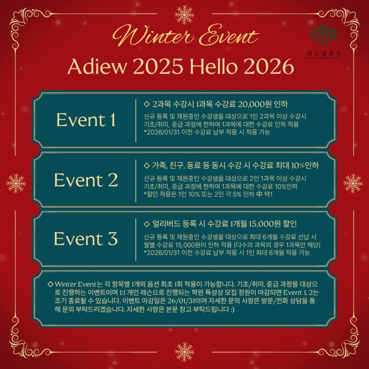 [남양주/다산 실용음악학원] Winter Event (~26/01/31)