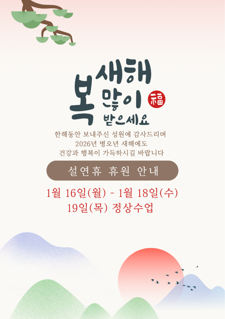 2026년 칸 영어학원 설연휴 안내