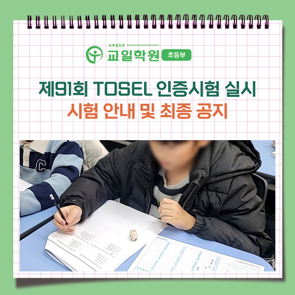 교일학원 초등관 제91회 TOSEL 인증시험 실시 안내 및 공지