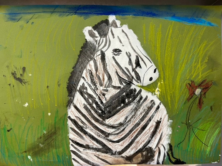 이번달 메인수업은 “얼룩말 ” 이었어요 ~ 큰 ~ 4절색지에 얼룩말을 그리고 물감을 이용해 표현했어요 . 흰색물감으로 얼룩말 바탕을 색칠해주기 ~ 물감 또는 매직으로 얼룩줄무늬를 그리고 정말 오랜만에 써보는 크레파스로 풀, 꽃, 구름등을 그려 배경을 채워주었답니다. 색지에 블랙 앤 화이트가 눈에 확 들어오죠 ? 완성작은 더 멋지답니다 멋진 작품 모두 수고했어요 <img src="https://blogthumb.pstatic.net/MjAyNjA0MDFfMjg0/MDAxNzc1MDQ2NTkxNjU5.U_aAVga-syb7KuGImBytXugQlSmeqKhWPqzVsZSu6hEg.gZ_7e8QRtjkYdKDKR2OI2fOTlgpcI_KQ1ltkg4He3Q0g.JPEG/IMG%A3%DF4509.jpg?type=s3" />