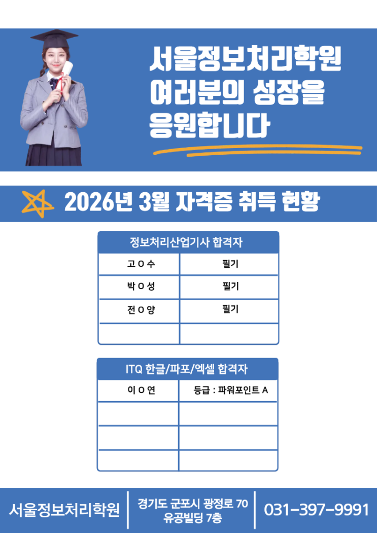 2026년 3월 서울정보처리학원 자격증 취득 현황