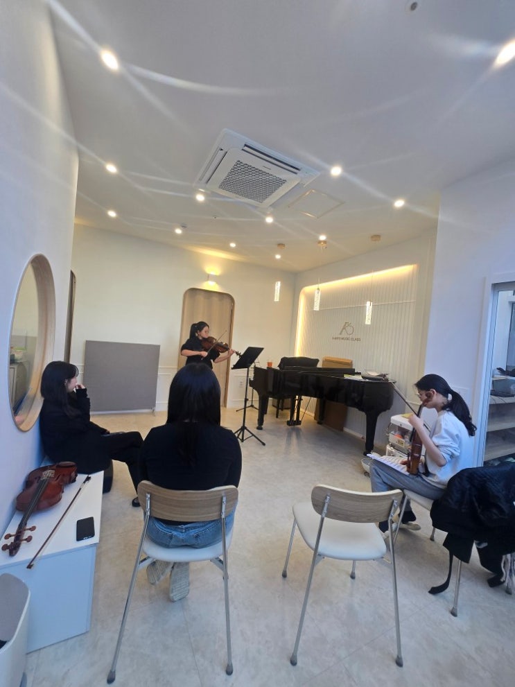 크리스마스 전공생 마스터클래스 & 작은 파티 크리스마스는 쉬는 날이지만^^ 전공을 준비하는 아이들에게는 하루하루가 곧 실력이 되는 소중한 시간입니다. 이번 크리스마스에는 전공생 아이들이 함께 모여 마스터클래스를 진행했습니다. 쉬는날에 바이올린 쌤이 고생해주셨어요~ 각자의 곡을 연주하고, 서로의 연주를 듣고, 조금 더 깊이 있는 연습과 점검의 시간을 가졌습니다. 연습과 연주 후에는 간단하지만 마음이 따뜻해지는 크리스마스 파티도 함께하며 소소한 이야기들로 웃고 즐기며 잠시 숨을 고르는 시간도 가졌습니다. 특히 이제 곧 대학 입학 시험을 앞둔 고3 학생을 위해 모두가 한마음으로 응원과 격려를 보냈습니....... <img src="https://blogthumb.pstatic.net/MjAyNjAxMDFfMjQ2/MDAxNzY3MjQ1MDc0NDQz.T2KghiLSiZZOGS68xAs8yb8HNOAMrDTmS7wUbPobGukg.3u_D36shI7FE7QUkDlf-KvweZLJggaMVfn0CYwFsYLIg.JPEG/1767244565339.jpg?type=s3" />