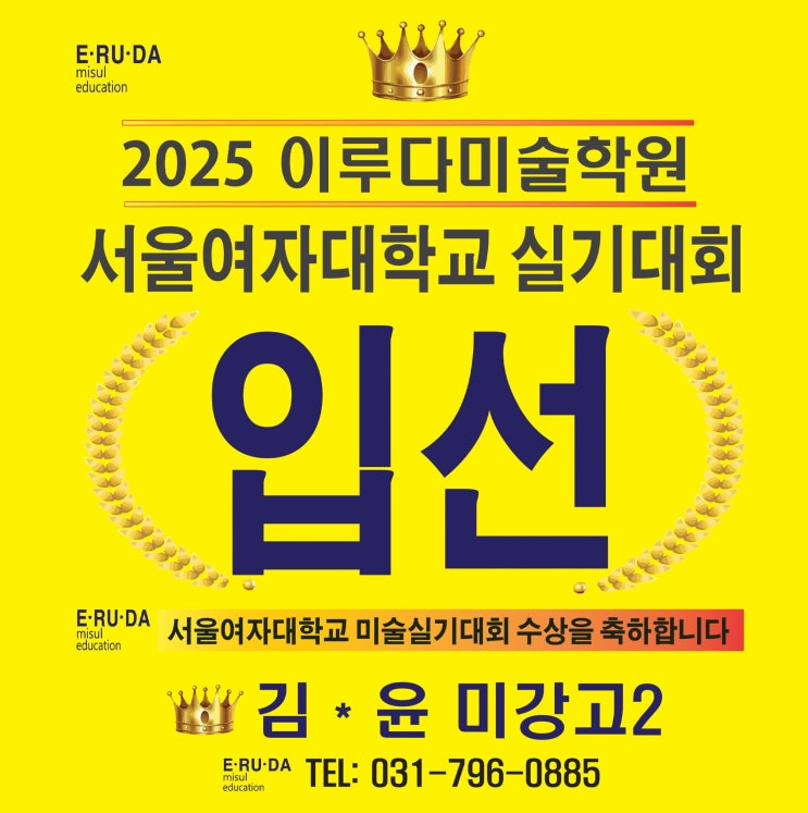 서울여자대학교 전국고등학교 미술.디자인 실기대회 응시 요강입니다. 고등부부터 응시가 가능한 대회여요. 이루다미술학원 고등부 응시했습니다. 전국 고등학생 및 졸업생들이 응시한 대회였는데, 고등학교2학년 재학생이 당당하게 수상을 하였습니다. 대단하지요!~~~~~ 너의 실력이 검증된 결과물이란다.~~~ 축하합니다.^0^ 상장과 함께 문화상품권을 받았습니다.^^~~ 상담문의 031-796-0885 <img src="https://blogthumb.pstatic.net/MjAyNjAyMTNfMjQ0/MDAxNzcwOTU2MTI2OTI4.Wt3JoeDRwhQndss01kdekz1zKKinkgHoxuSUhiEqgqcg.IFj0pKjluEzjPhQr5HpmS8vyP7C4Y8pkK2vJnXImAUIg.JPEG/%B1%E8%BC%D2%C0%B1-%BC%AD%BF%EF%BF%A9%B4%EB_%BD%C7%B1%E2%B4%EB%C8%B8_%C0%D4%BC%B1_%BC%F6%BB%F3.jpg?type=s3" />