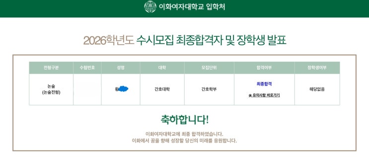2026학년도 수리 논술 합격자 발표