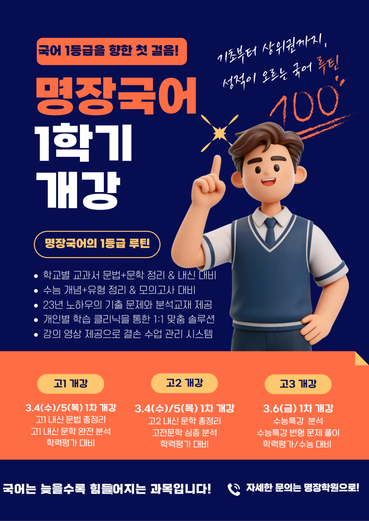 국어 등급을 올리고 싶으세요? 지금 바로 명장국어의 문을 두드리세요! 명장국어 장점 1. 꾸준한 국어 학습을 위해 주 2회 수업 2. 내신과 수능을 모두 대비 3. 학생별 맞춤 피드백 수능까지 책임지는 명장학원!! <img src="https://blogthumb.pstatic.net/MjAyNjAyMTlfMzAg/MDAxNzcxNDgwMjg0NTYw.YoMpRYcfJpiQEdZHaP6prEZxu4ABvXv_2vn6bQhWIZkg.wdTWJhcuNtPaxKv5j-JvJbG3yX_3uFL71gC4ydRiKtUg.PNG/2026%B3%E2_1%C7%D0%B1%E2_%C0%DA%BE%E7%B5%BF%B1%B9%BE%EE%C7%D0%BF%F8_%B8%ED%C0%E5%C7%D0%BF%F8_%B1%B9%BE%EE%B0%B3%B0%AD%BE%C8%B3%BB_%C0%DA%BE%E7%B0%ED%B1%B9%BE%EE_%B1%A4%BE%E7%B0%ED%B1%B9%BE%EE_%B0%C7%B4%EB%BA%CE%B0%ED%B1%B9%BE%EE_%B3%BB%BD%C5_%BC%F6%B4%C9%B4%EB%BA%F1.png?type=s3" />