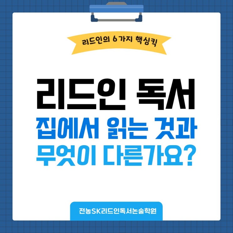 안녕하세요. 전농SK 리드인 독서 논술 학원입니다. 어느덧 추운 겨울이 지나고 3월, 새 학기가 다가오고 있습니다. 이 시기는 아이들이 새로운 교실과 친구들 속에서 학습 역량을 마음껏 펼칠 기회이자, 동시에 탄탄한 기초 학습력이 뒷받침되어야 하는 중요한 시기이기도 합니다. 특히 독서는 모든 교과의 기본이 되는 사고력과 집중력을 키우는 핵심 열쇠인 만큼, 가정에서는 아이의 독서 환경을 점검해 보는 것이 필요합니다. 집에서 책을 읽는 것과 무엇이 다른가요? 도서관에 보내는 것과 어떤 차이가 있나요? 학원에 방문하시는 많은 학부모님께서 "집에서 책을 읽는 것과 무엇이 다르냐?", "도서관에 보내는 것과 어떤 차....... <img src="https://blogthumb.pstatic.net/MjAyNjAyMTNfODYg/MDAxNzcwOTcwMjU4NTAy.4dFm_-2HVnb95Ji3xrfMliDRwK4AZZG0-u8mvGuG0xEg.YzyDCZWuX4dYCX1bi9z86xONQdaHixwcSHpROQG1zsgg.JPEG/6%C1%A6%B8%F1.jpg?type=s3" />