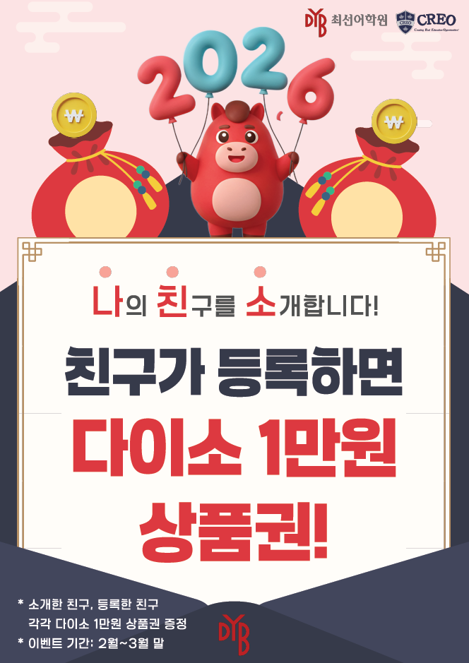 전주 영어학원, DYB 최선어학원&크레오 친구 소개 이벤트 안내