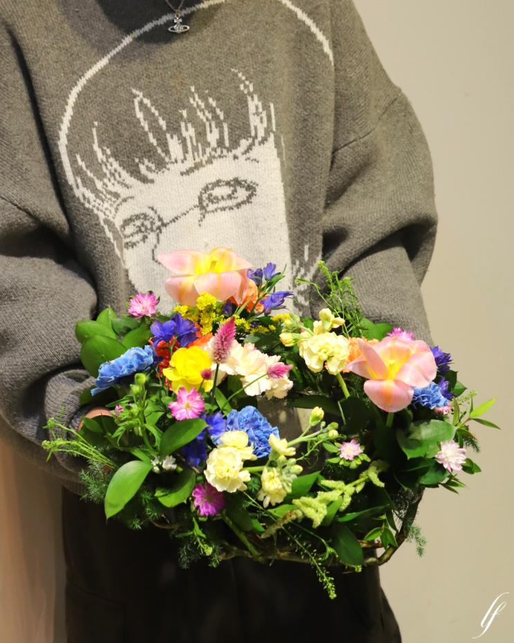 꽃으로 엮은 동그란 행복 리스 제작 수업의 소재 라인업을 소개합니다~! ㆍ구조재: 말채(리스의 튼튼한 뼈대와 선을 담당해요) ㆍ메인 플라워: 장미, 튤립, 카네이션(우아한 볼륨감) ㆍ포인트: 촛불맨드라미, 델피늄, 기린초(다채로운 질감과 색감) ㆍ그린 소재: 스토크, 루스커스(빈틈을 메워주는 풍성함) ✨ 라인업만 봐도 이미 화사하고 고급스러운 분위기가 그려지죠? 말채의 멋스러운 라인 위에 장미, 튤립, 델피늄이 춤추는 시간⌛ 직접 엮어가는 리스 수업은 마음을 차분하게 만들어주는 힘이 있지요~ 델피늄의 하늘거림과 촛불맨드라미의 유니크한 질감이 더해져 세상에 하나뿐인 나만의 리스가 탄생했습니다! 좋아하는 소....... <img src="https://blogthumb.pstatic.net/MjAyNjAyMTFfMjIw/MDAxNzcwNzk2MDM2OTgz.2q1dTkVN_37RbE_iUxiTqBapmlo9rKXbocLF0DGAAwAg.gRTuZgYWBNxClpxiMGESIAEqVZaPTgcuX6ettipOvJ0g.PNG/1.png?type=s3" />