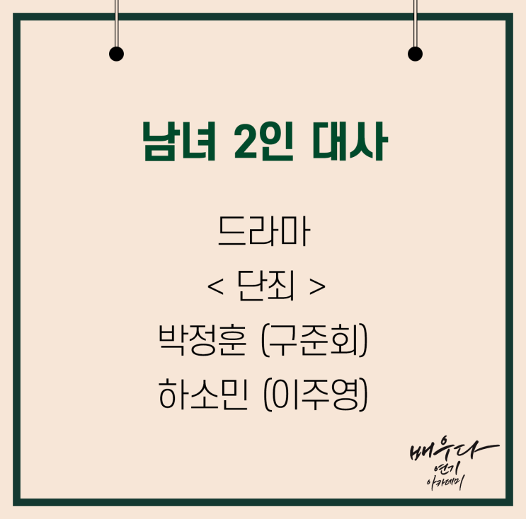 드라마 < 단죄 > 2화 박정훈 (구준회), 하소민 (이주영) 남녀 2인 대사