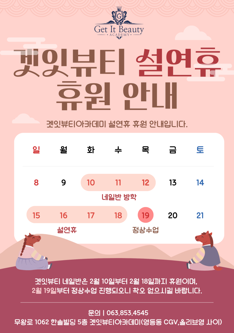 따뜻함을 주는 이 공간에서 미래의 나에 대한 투자 움직이지않으면 아무일도 일어나지 않는다! ✔️뭘고민해? 그냥하는거지~ 그냥 하다보면 방향이 잡히고 길이 보이는데... ✔️행복에 가까워지는확실한 방법은 뭔지 알아? 고통을 잘 견뎌내는 인내력 행복한 인생을 결정짓는 진정한 가치 무기력하게 있지 말고 그냥 해 뭐든~ 뷰티명가는? ▪️수강생들이 인정한 진정성 있는 미용학원 ▪️수강생중심인 미용학원 ▪️수강생을 위한 또 다른 진심 ✴️ 뷰티명가와 뷰티하세요! ʙᴇᴀᴜᴛʏᴍʏᴜɴɢɢᴀ ᴘʀᴏʀꜱᴜᴍ ☎️ 전화상담 063-852-0218 ⭕️ 인별그램 https/www.instagram.com/beauty_m_ga ⭕️ 홈페이지 www.beautymyeongga.com ....... <img src="https://phinf.pstatic.net/image.nmv/blog_2026_02_12_1878/Bwv3RggQHS_01.jpg?type=f480x480" />
