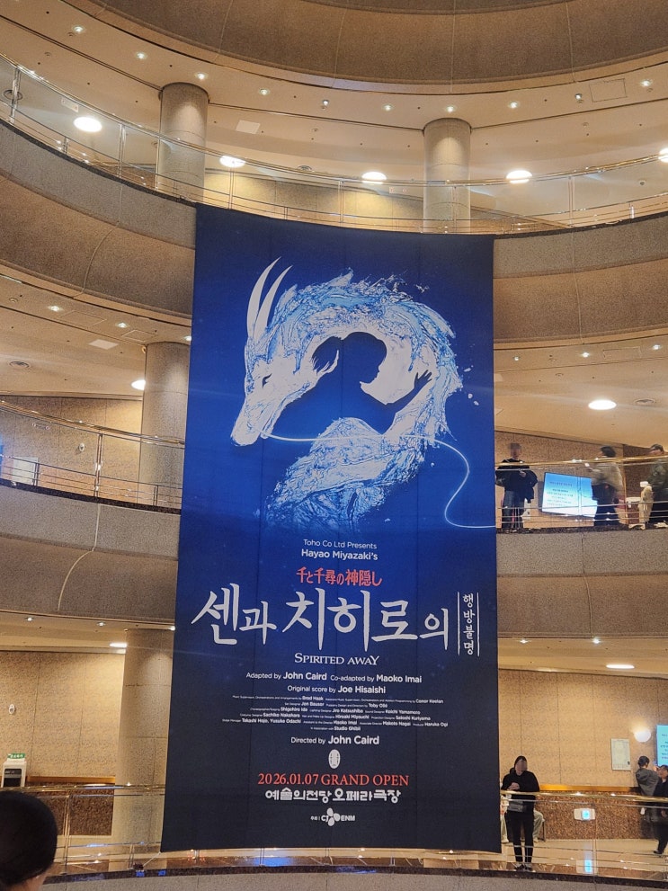 * 극 중 가장 유명한 장면 중 하나. 지하철 신과 함께 큰 감동을 자아내는 하쿠와의 재회 신 당연히 공연장 내부에서는 무대 장치, 커튼 콜 포함 모든 장면은 촬영과 녹화가 금지되어 있었기 때문에 언론사의 기사로 대체하고, 2026년 2월 어느 날, 여자친구는 센과 치히로의 행방불명이라는 일본 뮤지컬이 내한공연을 한다고 나에게 알려왔고, 지브리의 존재는 알고 있었으나 작품들에는 문외한이었던 나를 긴장시켰다. 아무래도 원어 공연이고, 스토리를 아예 모르고 간다면 아무래도 즐기기 힘들지 않을까 하는 마음에 3월 11일 수요일 공연을 예매해 놓고 전주 주말에 애니메이션으로 예습을 하기로 했다. 우선 애니메이션 '센과 치히로....... <img src="https://blogthumb.pstatic.net/MjAyNjAzMTNfMTI5/MDAxNzczNDAwMDA4NTAx.-ydSk9GsmyO7BHjf4COWIBaule1fYXE0uWJy0UVXZpgg.-1kpPLIu5pkC1sPGub6UNdHf_f-dwOggGgUUv2Bdjxwg.JPEG/KakaoTalk_20260313_200306117_04.jpg?type=s3" />