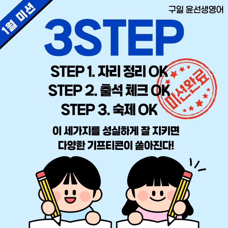 안녕하세요. 구로 1동 초등 중등 영어 전문 구일 윤선생영어 밝은제인원장입니다. 2026년 밝은 새해가 시작되었습니다! 학부모님의 관심과 아이들의 성실한 발걸음 덕분에 구일윤선생영어는 매일 조금씩 더 단단해지고 있습니다. 새해에도 아이들이 공부 앞에서 지치지 않도록, 기본부터 차근차근 함께 걸어가겠습니다. 가정마다 따뜻한 웃음과 건강이 가득한 한 해 되시길 바라며, 올해도 아이들 한 명 한 명 진심을 다해 지도하겠습니다. 늘 감사합니다. 새해 복 많이 받으세요! 그럼 1월 수업 일정과 학습이벤트를 안내해드리겠습니다. 1월 등록 시간 안내 2시 30분, 3시,3시 30분 그 외 시간은 마감되었습니다. 나머지 시간은 선착순으로 배....... <img src="https://blogthumb.pstatic.net/MjAyNjAxMDVfNSAg/MDAxNzY3NjA5MjUyODk5.VuCfILtkN_r24yBTGSf_HvANN9LO08ayaVwMN_DcdJEg.gngObkDLl05O9HjD04O4jE06oEkXD5nBHTCPlx8XPN4g.JPEG/%C1%A6%B8%F1%C0%BB_%C0%D4%B7%C2%C7%D8%C1%D6%BC%BC%BF%E4._%281%29.jpg?type=s3" />