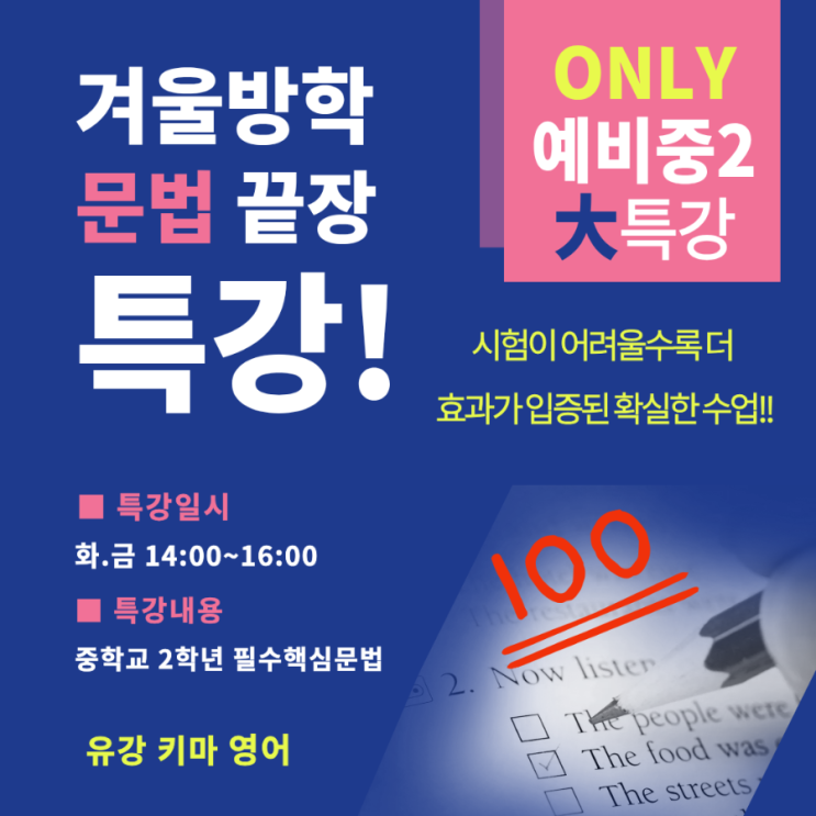 [유강중 영어 전문] 겨울방학 영어특강 중2내신대비 문법끝장 특강 오픈!!