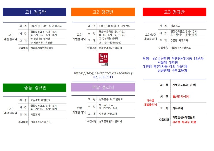 26년 새학기 정규반 시간표