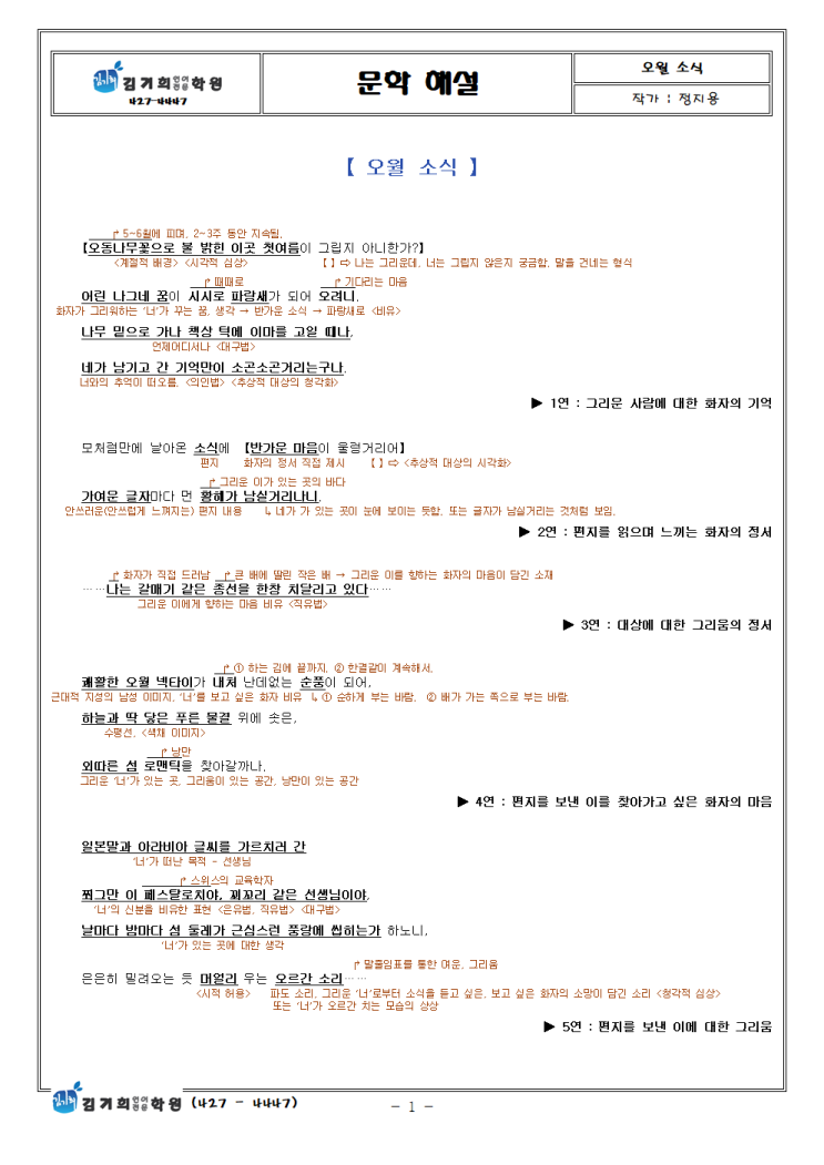[ EBS 수능특강 문학 해설 ] 【 오월 소식 】 - 정지용 ❚ 개관(槪觀) ❚ 파랑새로 날아온 그리운 이의 편지 쬐그만 페스탈로치, 꾀꼬리같은 선생님 푸른 하늘, 푸른 물결 위에 솟은 외따른 섬 로맨틱을 찾아갈까나 멀리서 우는 오르간 소리...... 기억, 편지, 그리움, 찾아, 그리움, 그리, 외, 외, 감, 비, 모더니, 정, 각, 유, 국, 편지, 그리움, 감각, 외, 외, 모더니, 비 <img src="https://blogthumb.pstatic.net/MjAyNjAyMjFfODMg/MDAxNzcxNjUxMDk1MjY3.GALpCpqCmzDMOU2wJx5RYpZggRmVusopFE1HxzQsGZog.uTUIu3MIy25eOJUWgJgL5UYOAIVqJv51tHX8SsXL8Hog.PNG/%BF%C0%BF%F9_%BC%D2%BD%C4_%28%C1%A4%C1%F6%BF%EB%29_%C7%D8%BC%B3001.png?type=s3" />