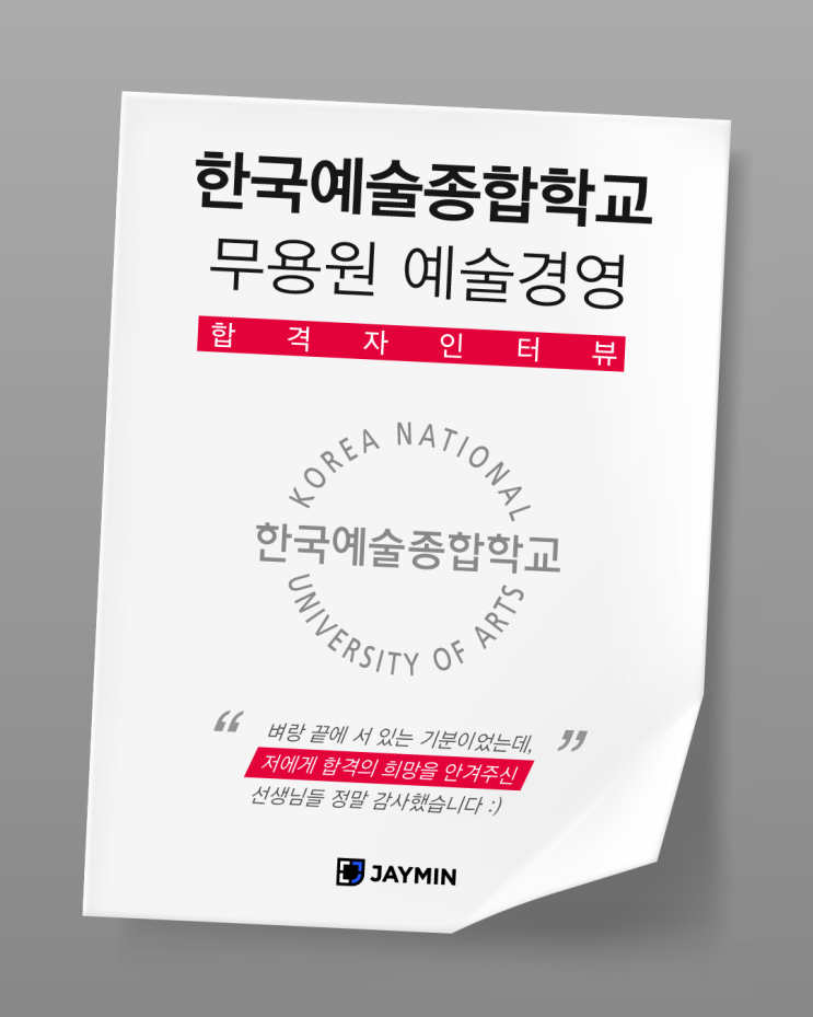 2026 한국예술종합학교 무용원 예술경영 합격자 인터뷰 자기소개와 함께 어떤 계기로 예술경영 입시를 시작하게 되었는지 알려주세요! 안녕하세요, 저는 이번 2026학년도 입시에서 한국예술종합학교 무용원 예술경영전공에 합격하게 된 제이민아트스터디 졸업생입니다. 아버지의 영향으로 영화에 관심을 갖게 된 저는, 좋은 영화를 관객들에게 잘 전달될 수 있도록 돕는 영화 프로듀서가 되고 싶다는 꿈을 꾸었고, 그 꿈을 향한 첫걸음으로 제이민에서 예술경영 입시를 시작하게 되었습니다. 제이민에서 공부하면서 느꼈던 제이민만의 특별한 점이 있다면? 가장 큰 장점은 단연 소규모 그룹수업이라고 생각합니다. 처음에는 선생님과 더 밀접하게....... <img src="https://blogthumb.pstatic.net/MjAyNjAxMDhfMTIx/MDAxNzY3ODU2MzQ5NzMz.hrI2F4yO9G34MfH2dSh5QmpHfxNwEtAgaeE6cLsRfmog.ewcyIQNXbUU0U7FmPiwktkOKKbsMsYDd3-kAnR9NWMIg.PNG/%C1%A6%C0%CC%B9%CE%BE%C6%C6%AE%BD%BA%C5%CD%B5%F0_%C7%D1%B1%B9%BF%B9%BC%FA%C1%BE%C7%D5%C7%D0%B1%B3_%BF%B9%BC%FA%B0%E6%BF%B5%C7%D5%B0%DD%C8%C4%B1%E2_0.png?type=s3" />