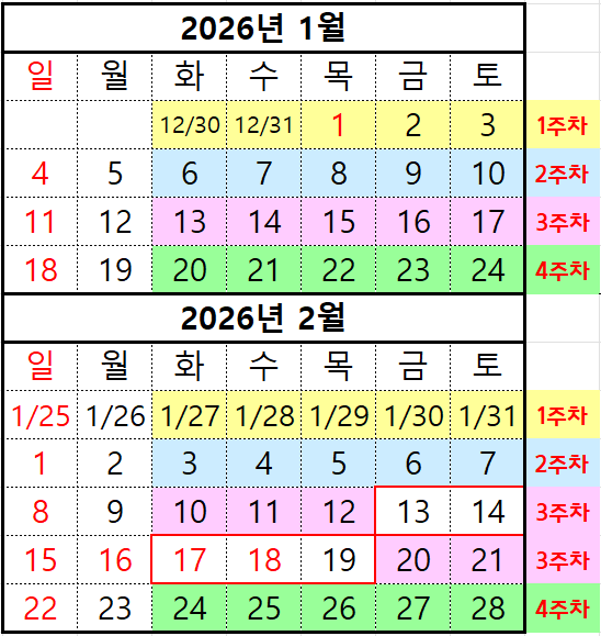 2026년 1월 수업일정