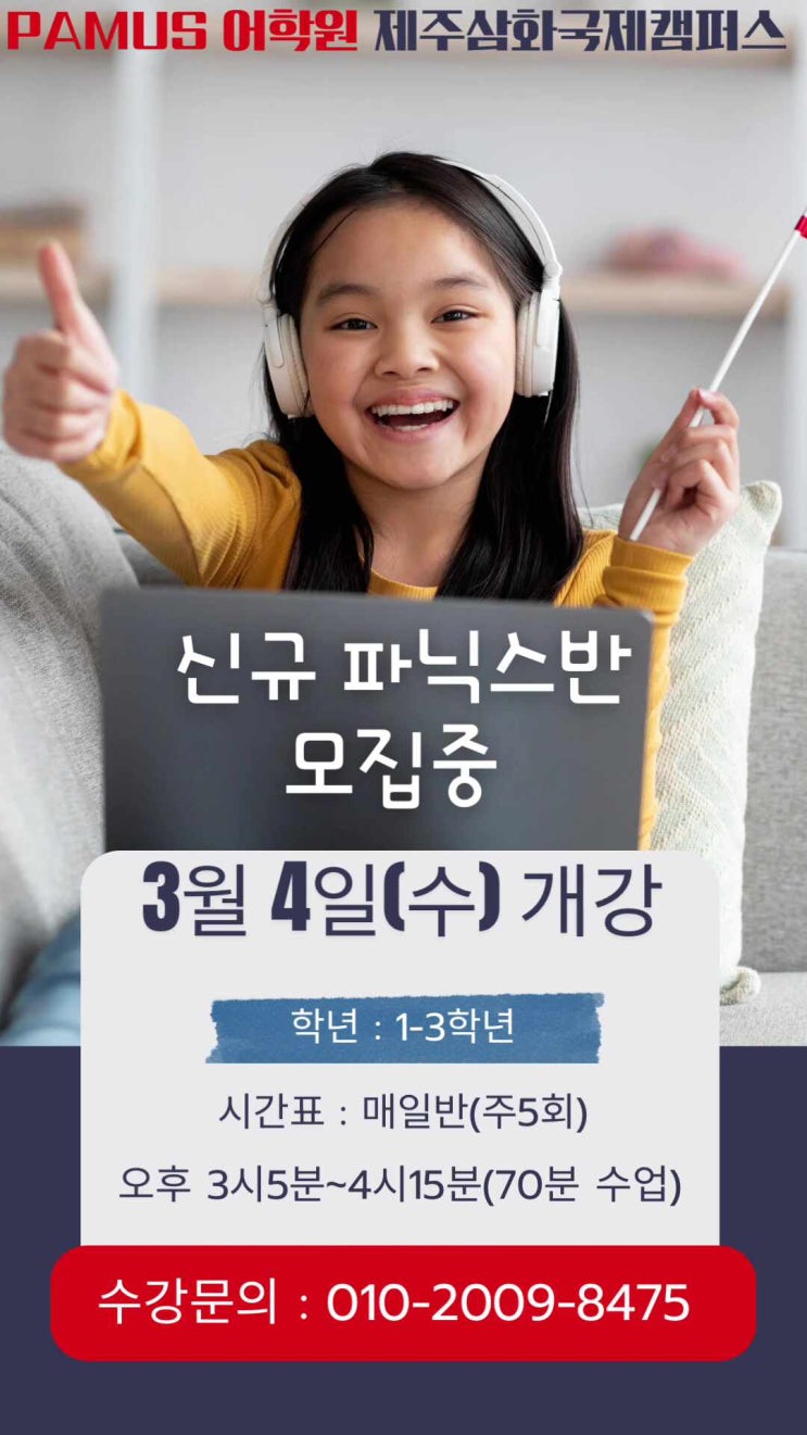 Hello, everyone! 잘 들리고, 잘 표현하는 영어 우리 아이들의 영어 말하기 자신감을 쑥쑥 높여주는 파머스 어학원 제주삼화국제캠퍼스 원장 Erica 입니다. 신학기, 새학년을 맞이하여 영어를 처음 배우는 친구들을 위한 신규 파닉스 반이 오픈 합니다 개강일 : 3월5일(수) 시간표 : 주5회 매일반 오후 3시5분~4시15분(70분) 대상 : 초등1학년~3학년 누구팀이 빠르게 글자를 완성 할까요? Bella & Ellin What lovely girls❤️❤️❤️ 파머스 파닉스 반 친구들은 Voiced, Voiceless가 무엇인지 아는 똑똑이들이에요 아이들, 학생들이 주도적으로 참여하고 다채로운 교구 활동을 통해 즐겁게 배우는 영어, 소극적이고 부끄럼 많고 말....... <img src="https://phinf.pstatic.net/image.nmv/blog_2026_02_20_652/RjkbhH6eFP_03.jpg?type=f480x480" />