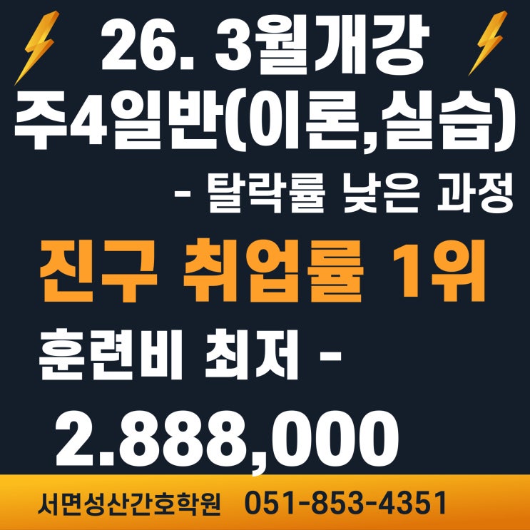 #간호조무사#간호실습#실습병원#2027년 국가고시#부산진구#간호학원 2027년 3월 국가고시 대비 주4일반 개강 ■ 탈락률 감소 ■ 학습 부담 감소 ■ 보충시간 확보 ■ 알바 및 육아 병행 가능 진구 취업률 1위 ■ 실습병원 1대1 매칭 취업으로 연계 ■ 스팩없이 취업 가능한 의료직 최저 훈련비 ( 2,888,000원 ) ■ 경제적 부담 최소화 기초실습부터 심화실습까지 ~~ 임상에 강한 간호조무사로 양성해 드립니다 상담문의 051 - 853 - 4351 <img src="https://blogthumb.pstatic.net/MjAyNjAyMTlfMTk5/MDAxNzcxNDY0OTUwNTg5.IuSmBOJR4K2qF1Ubo4YzhMj5m27T-QBpP1rWlmO19ZUg.25jQx1jw5sdV_rZUv-Z6GAZeDnQtiWWW6KJAREUnnskg.JPEG/%BA%ED%B7%CE%B1%D71.jpg?type=s3" />