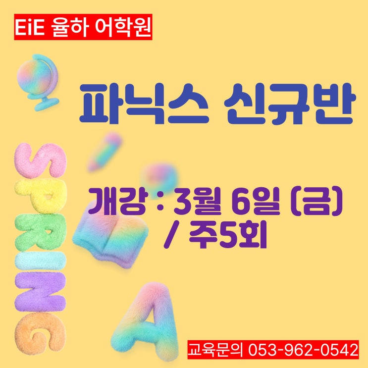대구 율하 영어학원 EiE 율하 캠퍼스 "파닉스 신규반 개강"