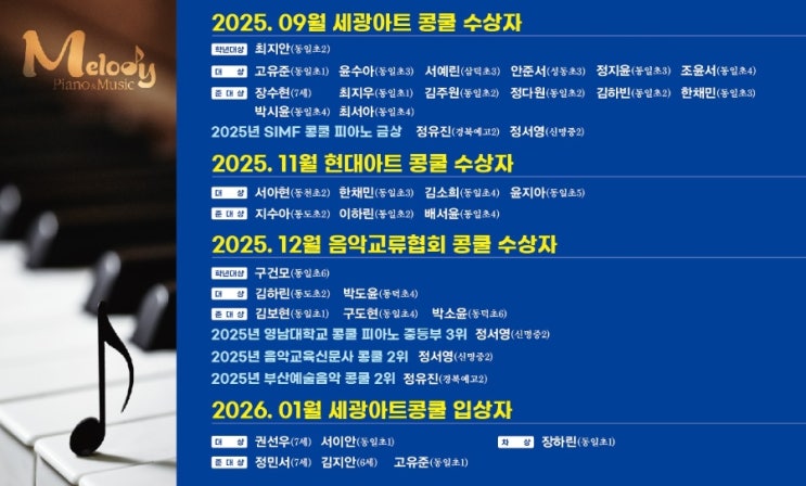 [2026년 전국아시아음악콩쿨 수상자] 대구동천초등학교/동천초피아노/범어동피아노/범어초피아노/음악콩쿨