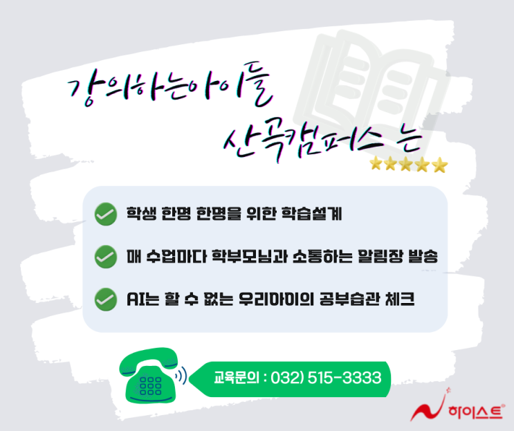 안녕하세요^^ 프리미엄수학학원 강의하는 아이들 내신, 특목, 대입 입시에 강한! 부평하이스트 학원입니다. 부평하이스트 학원에서는 부평지역~ 산곡동, 십정동, 청천동, 가좌동, 부평동까지 차량운행 되고 있습니다! 시간대별, 요일별로 차량운행지역이 다소 상이하니 전화상담시 차량운행여부를 먼저 확인해 주세요! 아이의 수학 성적이 쉽게 오르지 않을 때, 많은 학부모님들이 같은 고민을 하십니다. “문제는 푸는데, 개념을 제대로 이해한 걸까?” “학원을 다니는데 왜 설명을 못 할까?” 이 질문에 분명한 답을 주는 곳, 바로~!!! 강의하는 아이들 부평산곡캠퍼스입니다. 수학은 ‘듣는 공부’가 아니라 ‘설명하는 공부’ 강....... <img src="https://blogthumb.pstatic.net/MjAyNjAxMjRfMTU2/MDAxNzY5MjM3ODM0NzEy.EDFTKUQvFN5DgBt6c299xy6KQIOykHixjx3JPl2Wef8g.C42eyvR6s1SCA4Cs9nJtnSYijKqYjfviEa1EjQjjJegg.PNG/KakaoTalk_20260116_202951479_04.png?type=s3" />