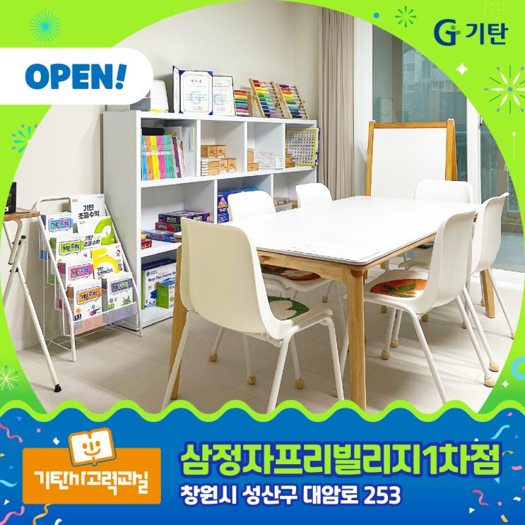 창원시 성주동에서 아이의 학습 기초를 확실히 잡아줄 새로운 교육 공간, 성주동 기탄공부방이 드디어 문을 열었습니다. 아이의 첫 공부 습관은 평생의 학습 태도를 결정짓는 중요한 시작점입니다. 성주동에서 아이가 공부의 재미를 경험할 수 있는 환경을 찾고 계셨다면 이번에 오픈한 성주동 기탄공부방이 최선의 선택이 될 것입니다. 학습에 몰입하는 공간, 인테리어의 차이 학습 효율을 극대화하기 위해서는 환경이 무엇보다 중요합니다. 성주동 기탄공부방은 아이가 안정감을 느끼며 오로지 공부에만 집중할 수 있도록 화이트 톤의 차분하고 감각적인 인테리어를 완성했습니다. 성주동 기탄공부방의 인테리어는 아이가 스스로 매일 방....... <img src="https://blogthumb.pstatic.net/MjAyNjAyMDlfMTYy/MDAxNzcwNjIyNTk3OTc1.Z4gG0QOxu7a8ydQyWwmUsV4HaDybuo22VEThdujES7Ug.aBiwuVdfzG3dRdZ9i4ZCjmfyxlXui2rwyCo6tm0Ke90g.PNG/2601_20_%C1%A4%B9%E6%C7%FC_%BB%EF%C1%A4%C0%DA%C7%C1%B8%AE%BA%F4%B8%AE%C1%F61%C2%F7%C1%A1.png?type=s3" />