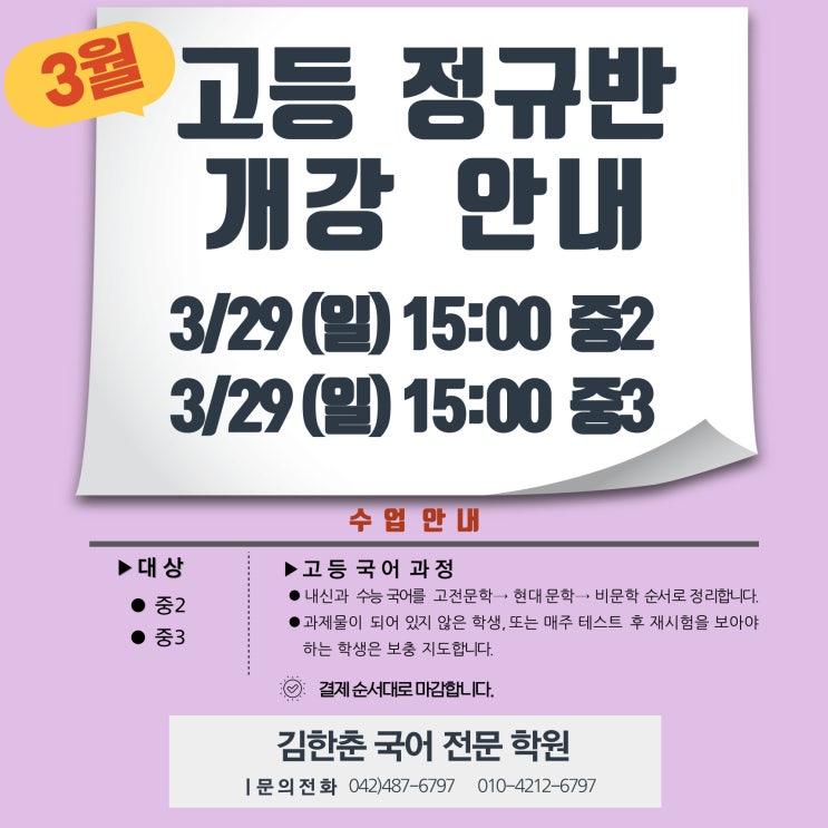 [공지] 3월 정규(고전문학)반 개강 안내